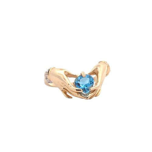 10K Yellow Gold Hands Holding a Heart Cut Blue Topaz Ring w/ Diamond Accents