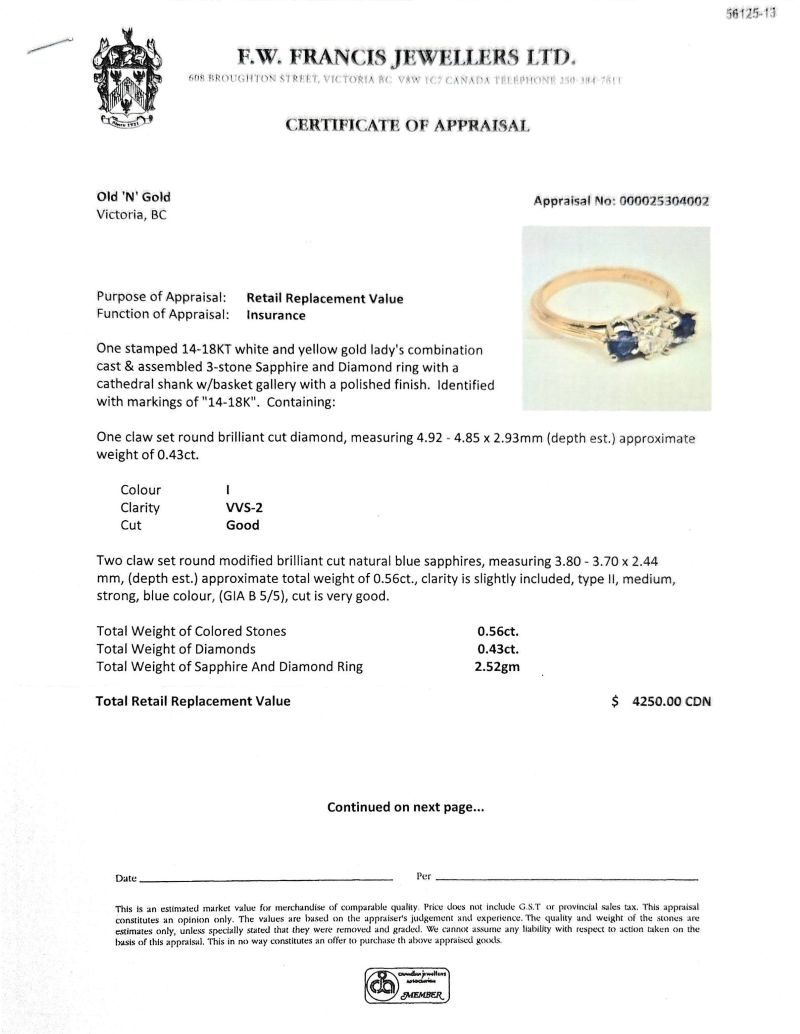 14K-18K Yellow Gold 2 Blue Sapphire 1 RBC Diamond Ring