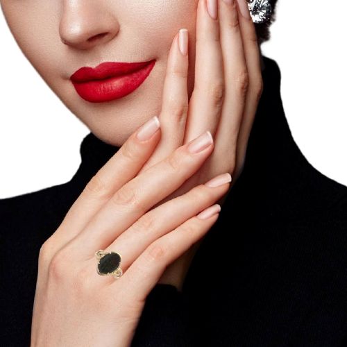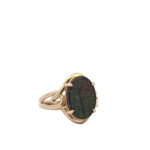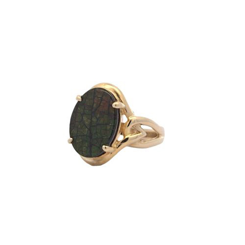 14K Yellow Gold 14mm x 10mm Oval Ammolite Ring
