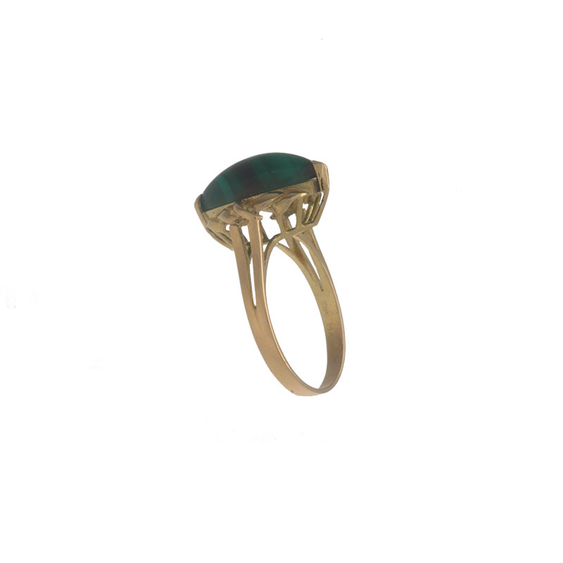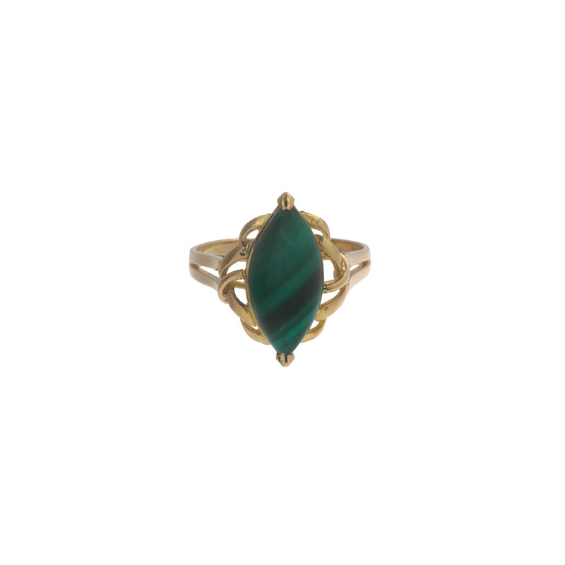 14K Yellow Gold Cabochon Marquise Malachite Solitaire Ring