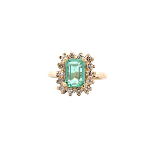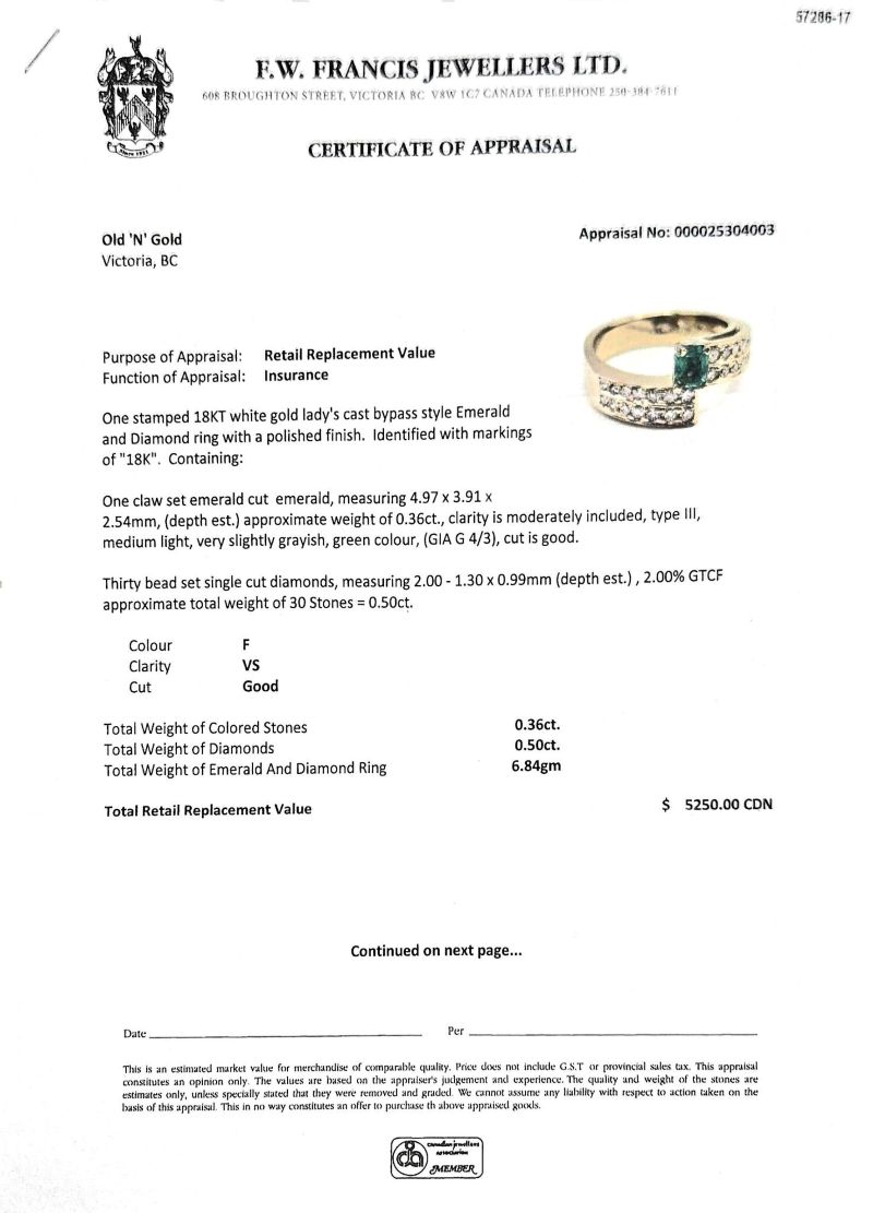 18K White Gold Ring w/ Emerald Cut Emerald & 30 Diamonds