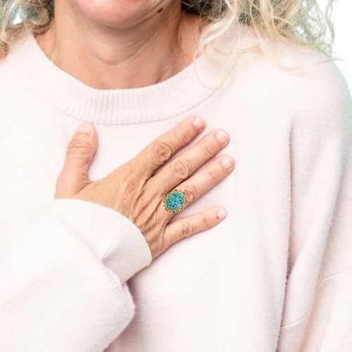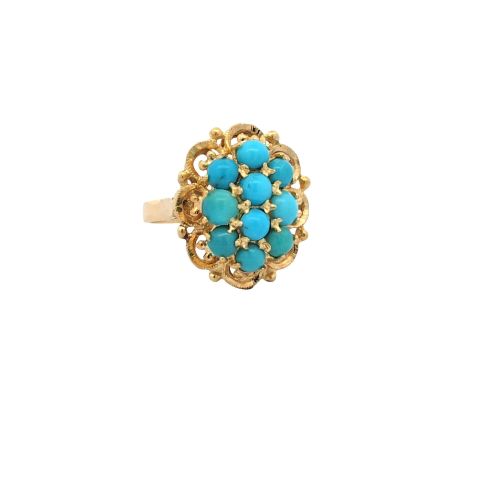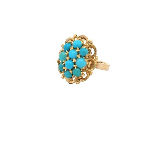18K Yellow Gold 10 Turquoise Cluster Ring